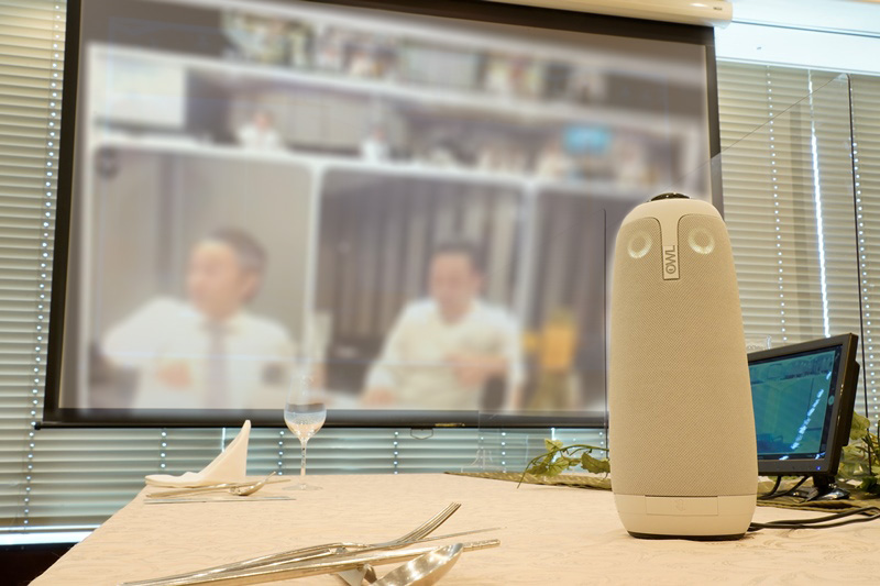 一般的なWEBカメラとちがって、オウルのカメラは360度で、しかも、話す人をAI機能でオートフォーカスしてくれる。これはリモートであってもより臨場感をもって、会食を楽しんでいただけるのではないかと感じていました。